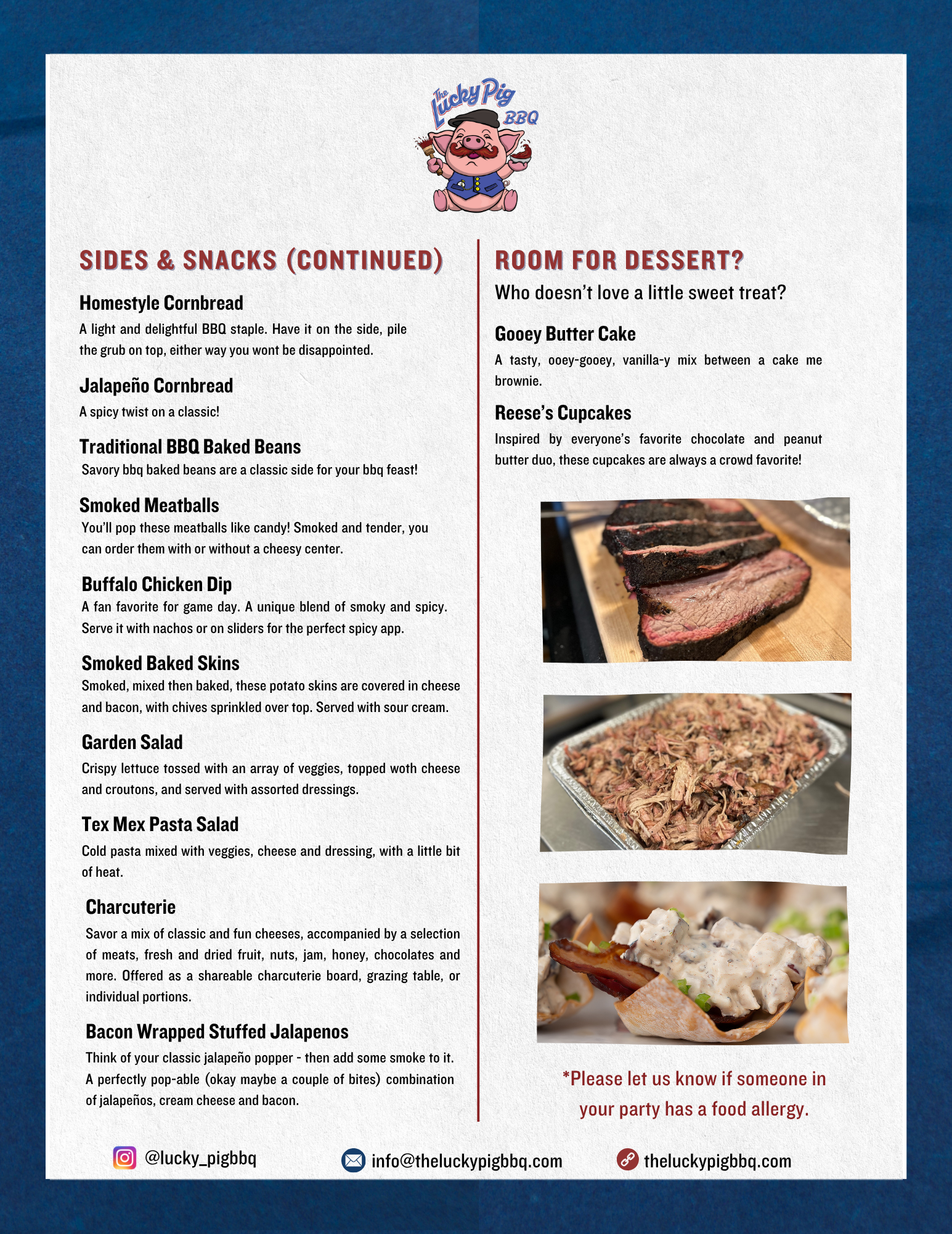 Our Menu Name * First Name Last Name Email * Event Date Event Address Address 1 Address 2 City State/Province Zip/Postal Code Country Event Time Number of Guests Additional Details * Thank you for your interest in The Lucky Pig BBQ! We’ll be in touch soon!